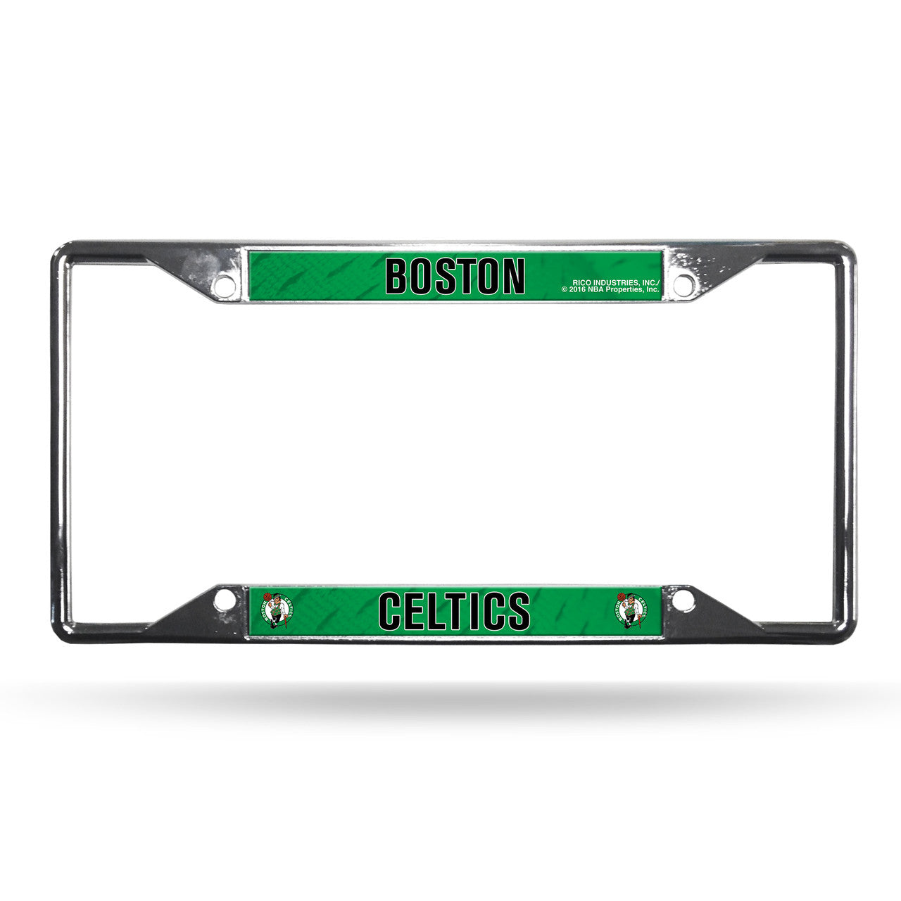 Heavy-duty chrome frame features your the team name and logo in raised letters and vibrant team colors, with pre-drilled holes for easy mounting on any vehicle. Made by Rico Industries.