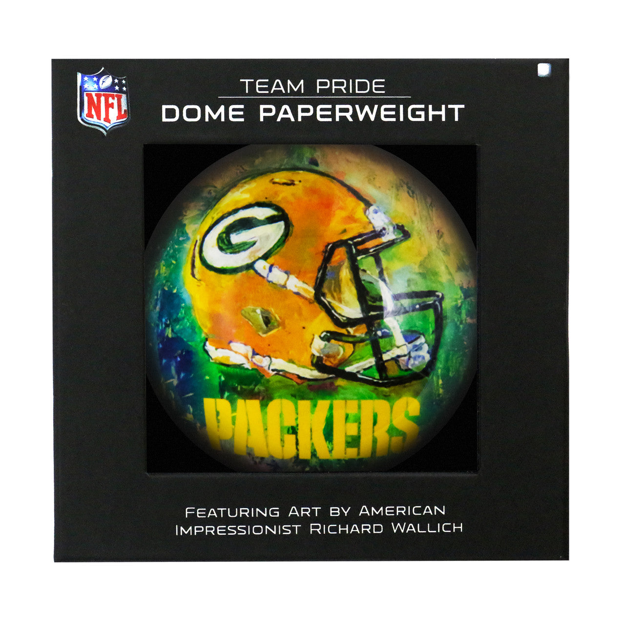 Show your team pride at home or in your office with the officially licensed domed paperweight. This unique glass desk accessory features art of American Impressionist Richard Wallich. The smooth glass dome catches natural light, enhancing the vibrant colors of the art. Designed to keep loose papers securely in place. It is both functional and fun. Measures approximately 4x4x1.75 inches. Made by Sporticulture.