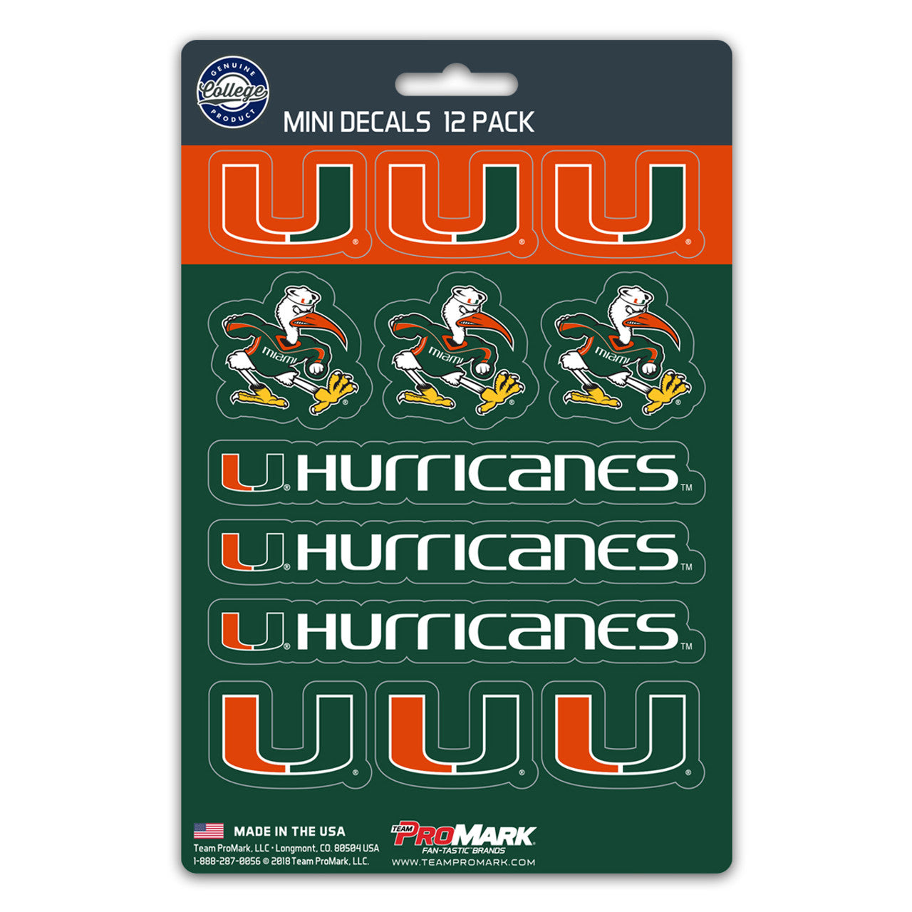 Miami Hurricanes Decal Set Mini 12 Pack