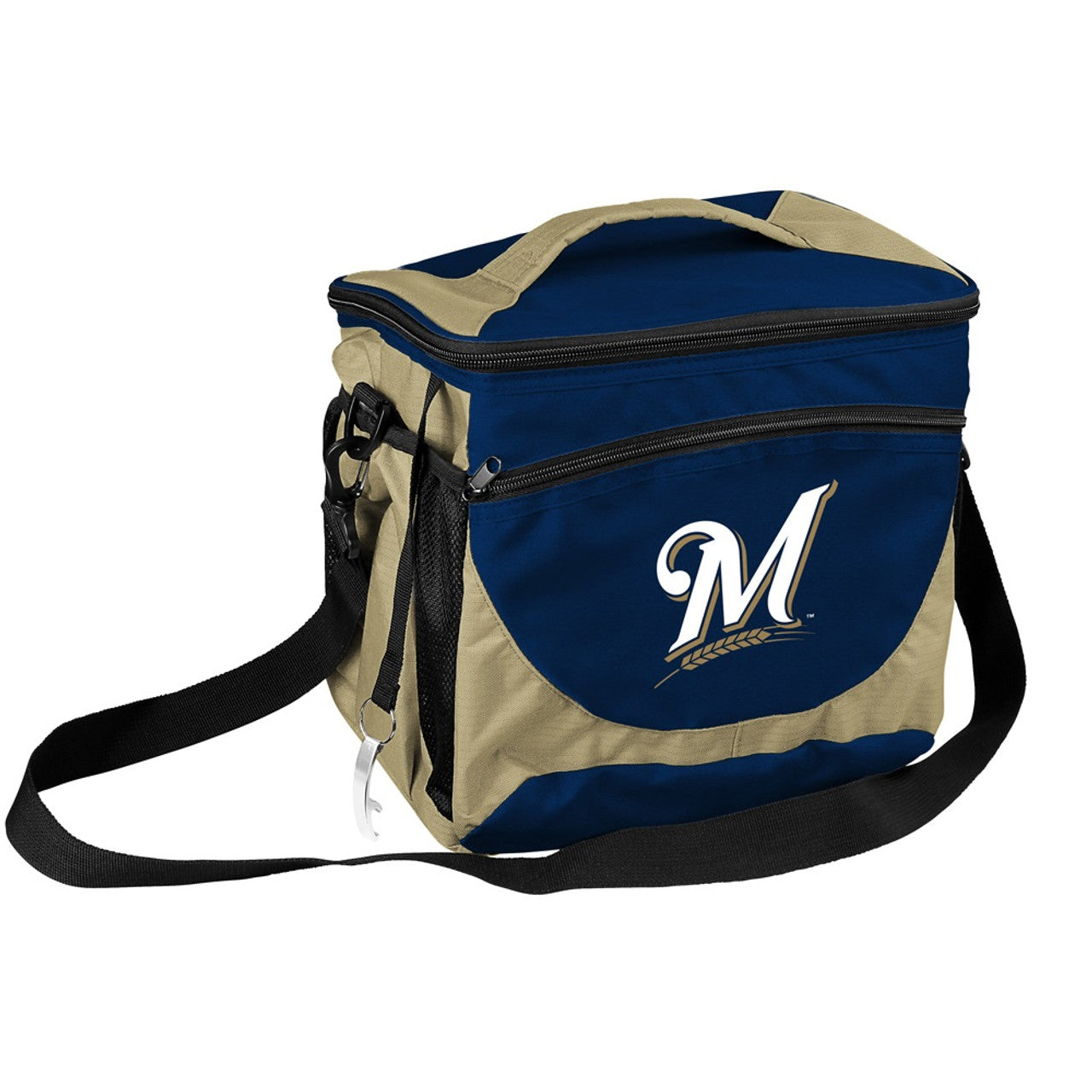 This 24 Can Cooler is a practical size for any outing. It is made with a heat-sealed, leak-proof lining to help keep your snacks or drinks icy cold. It has a zipper dry pocket on the front and a mesh pocket on each side. Use the handle on the lid or the detachable shoulder strap. Holds ice for 24 hours. Made by Logo Brands.