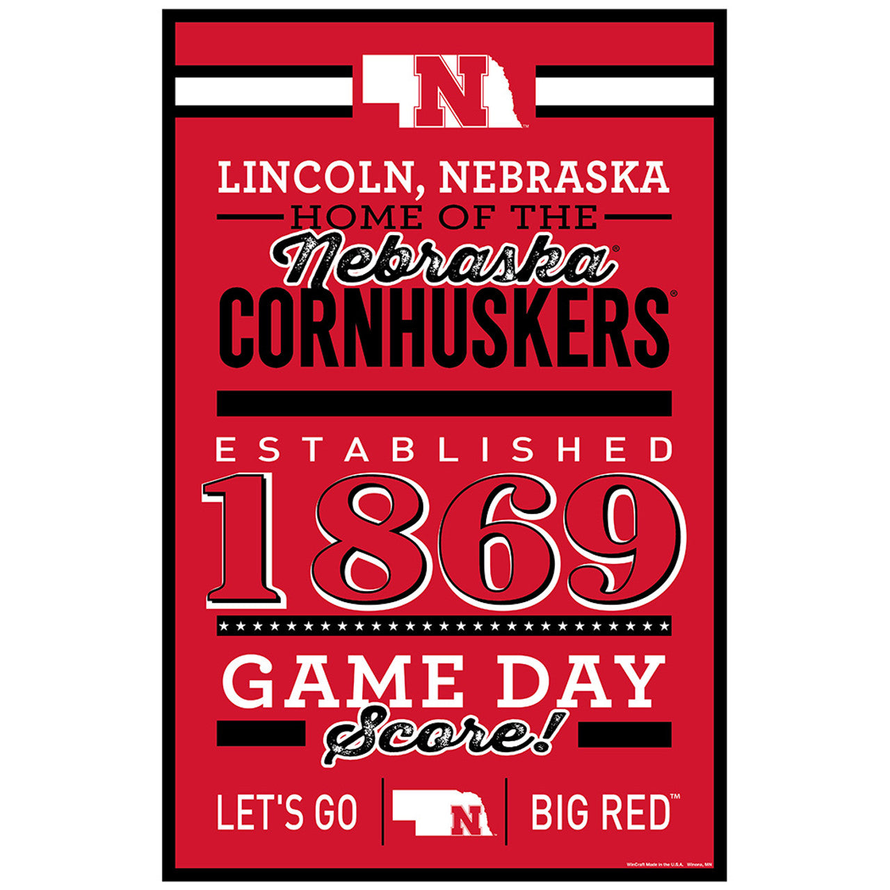 Nebraska Cornhuskers Sign 11x17 Wood Established Design
