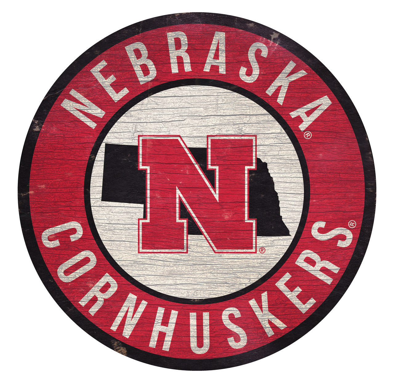 Nebraska Cornhuskers Sign Wood 12 Inch Round State Design