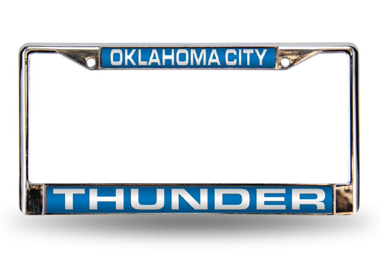 Oklahoma City Thunder License Plate Frame Laser Cut Chrome Blue
