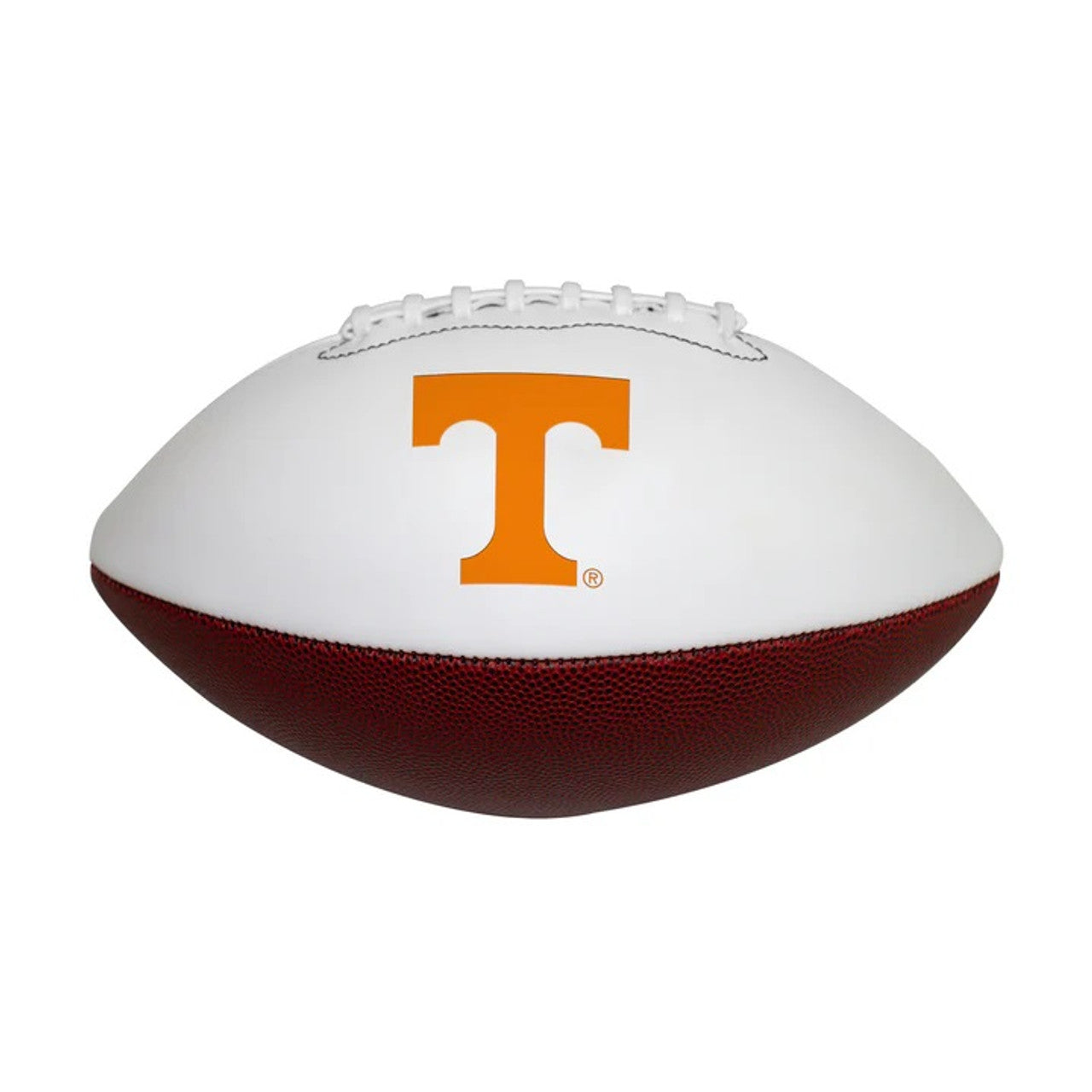 This officially licensed, high-quality autograph football is great for gifts, collectors, and home or office display. A brown pebble grain panel features a team wordmark in black. Two smooth white panels give ample room for signatures. The top smooth panel has a large debossed team logo. Best if signed with a permanent marker and given time to dry to prevent smearing. Made by Logo Brands