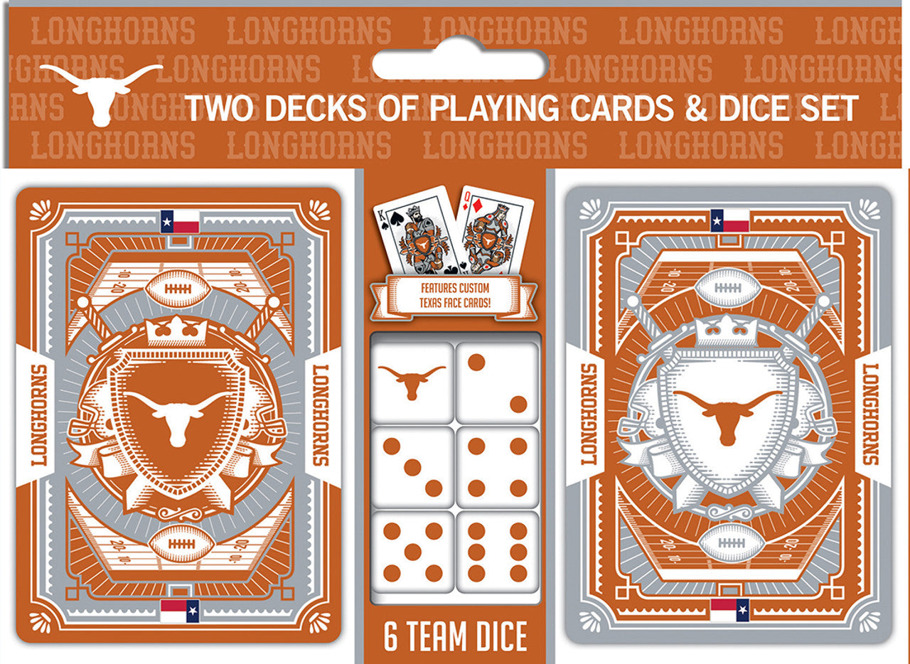 This 2 pack card and dice set is perfect for all NFL fans! Each standard card deck contains 52 cards and 2 jokers with custom team designs. Set includes 5 standard size dice featuring the team logo and colors on each die. Perfect for all fans! Made by MasterPieces Puzzle Company.
